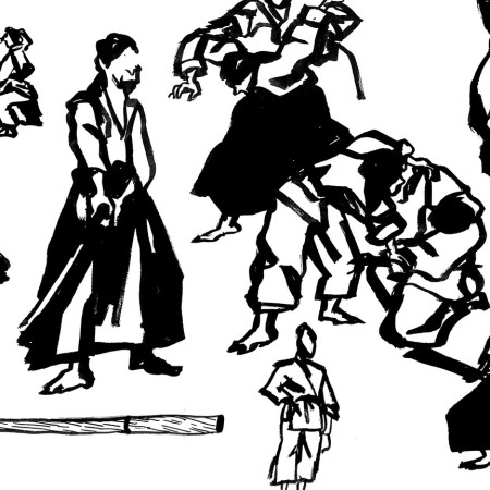 Des étudiants en art croquent les cours d’aïkido